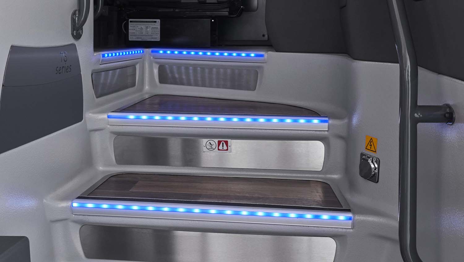 TS35 interior is designed for exceptional comfort, functionality, and efficiency. A spacious, curved entrance with LED lighting ensures easy access, while generous parcel racks provide ample storage.