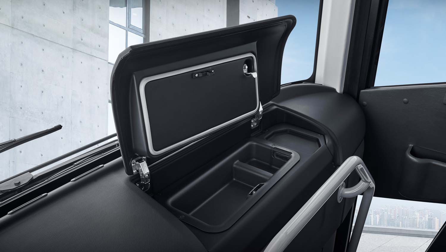 Sürücü kabini, işlevsellik ve ergonomi göz önünde bulundurularak tasarlanmıştır. Geniş görüş alanı, sezgisel kontrol elemanları ve rahat oturum pozisyonu sayesinde sürücüler için güvenli ve rahat bir çalışma ortamı yaratır.