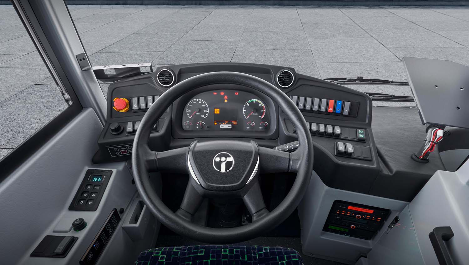 Sürücü kabininde yer alan ergonomik gösterge paneli ve geniş görüş açısı, sürüş konforunu artırırken; MD9 LE'nin çağdaş karakteri, modern kentlerin ulaşım ihtiyaçlarına mükemmel uyum sağlar.