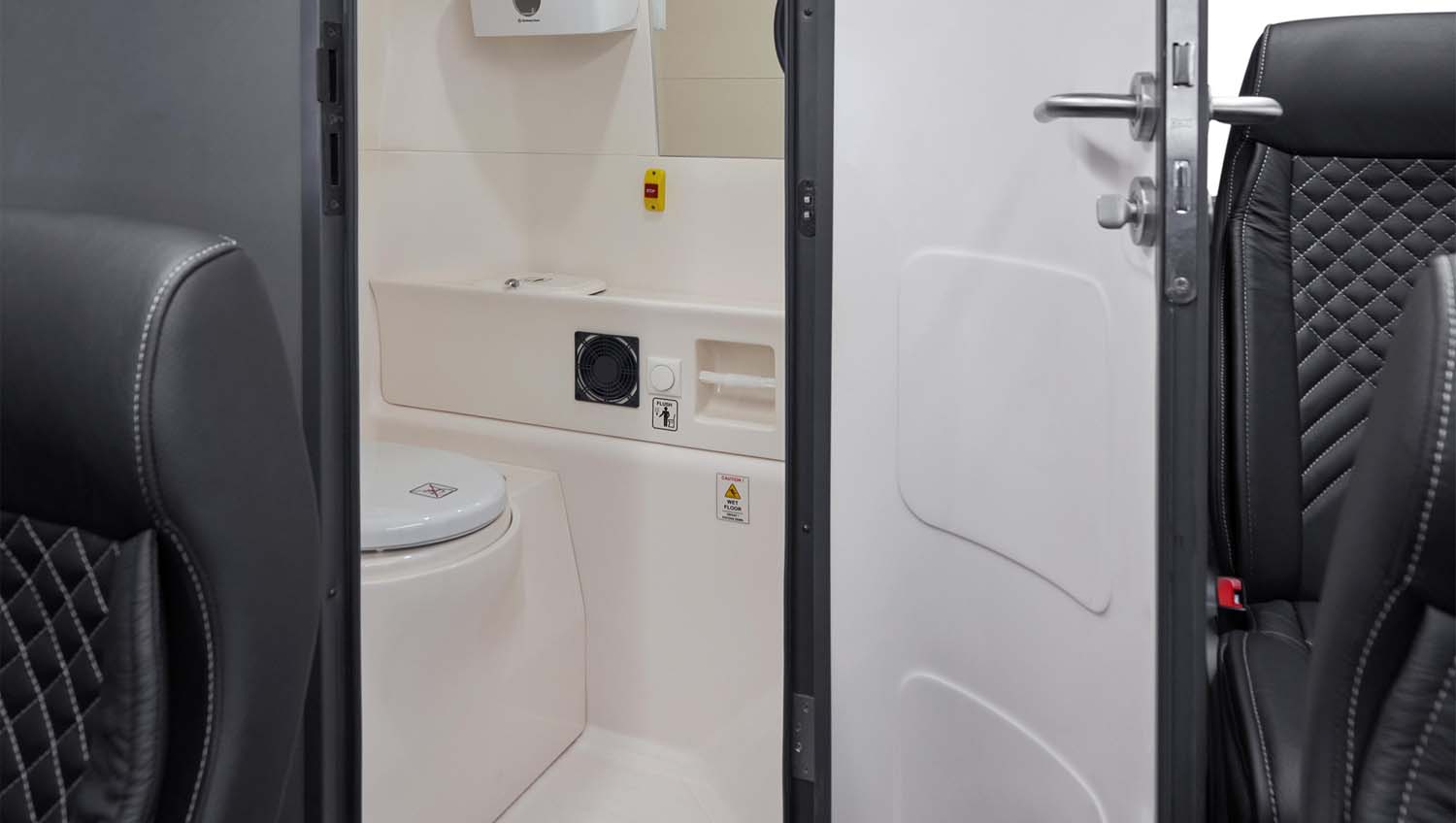 Yeniden tasarlanan tuvalet bölümü, yolcu konforunu artırmak için ergonomik çözümlerle desteklenmiştir. Estetik detayları tamamlayan şık ayna tasarımı da iç mekânın premium atmosferine katkı sağlar.